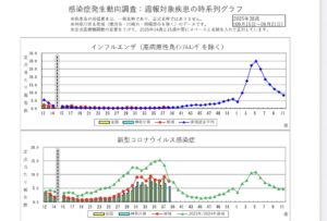 R7年9月21日時点でのインフルエンザ、コロナウイルス感染症患者数の報告です
