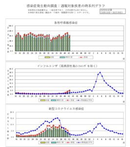 R7年10月19日時点でのインフルエンザ、コロナウイルス感染症患者数の報告です
