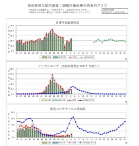 R8年1月25日時点でのインフルエンザ、コロナウイルス、感染性胃腸炎等の患者数報告です