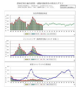 R8年4月5日時点でのインフルエンザ、コロナウイルス等の患者数報告です