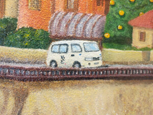 稲村ケ崎から臨む早春の富士を背景に、「やと」のハイエースが皆様をお迎えに颯爽と走る姿を表現しております。